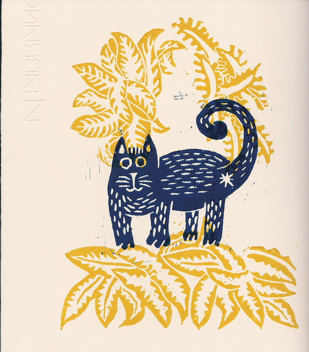 Impresión con linograbado* sobre papel Fabriano Rosaspina avorio 60% algodón a 2 tintas. Medida 23cm de ancho X 25cm altura.